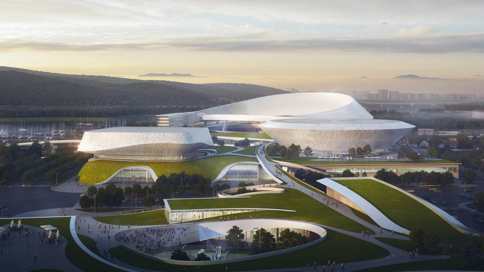 The design creates two scales, facing the river is the scale of the landscape landmark with great opening and closing, and facing the city is the scale of the relatives of the fireworks market. The plan is based on the concept of “flowing mountain realm, white practice floating sky”, taking the “Fuchun Mountain Residence Map” long rolling and undulating realm, condensing the flow of river water and washing momentum. The composition transformation is achieved through the broad and clear layers, aiming to combine the free-flowing tension composition through the Zhejiang landscape beauty of “mountain, water, wood, stone, cloud, sand, and village”. Repaint the grand scenery of the Fuchun River and recreate the ideal life in Jiangnan.