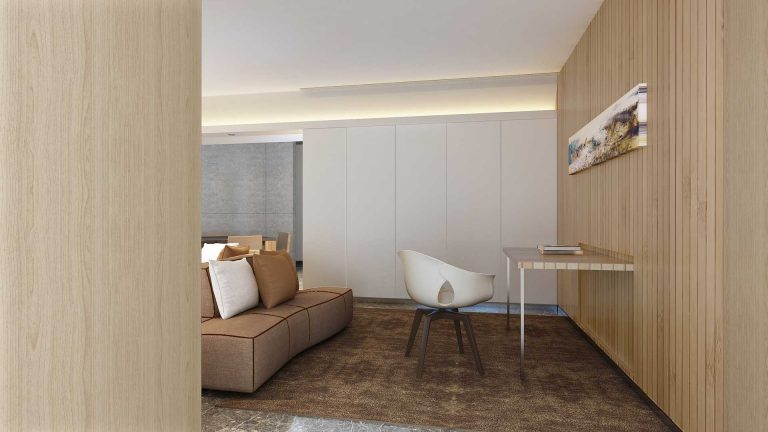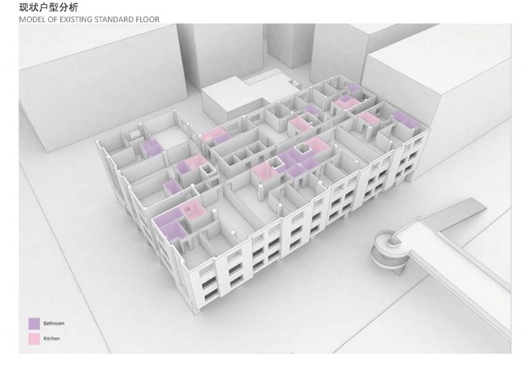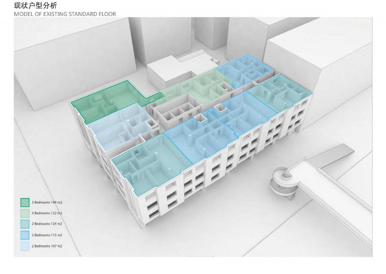 Taking the building frame, orientation and space into consideration, the designers optimized the existing structure by expanding spaces which are not related to the roof beam, thus satisfies the residential comfort while ensuring the basic functions. The coating of the ventilation patio is replaced by environmentally friendly and light material so that it provides bright space for the bathroom and kitchen which are redesigned near the patio. Each apartment is optimized respectively to fit the needs of clients from different ages, favor, etc. In addition, intelligent home system and high-end furniture are equipped to improve client experience. The project is about to complete in 2 month.