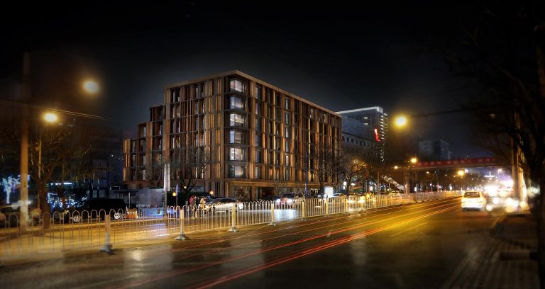 Aide apartment, built in the core area of Sanlitun in 1995, is one of the first service apartments favored by expatriates. Since the area becomes one of the most bustling commercial district in Beijing, the apartment is gradually losing competitiveness comparing with cutting-edge designed buildings springing up in the neighborhood. Entrusted by the new owner, WVA Architects redesigned the entire façade and the interior spaces, striving to make it a symbol of high-end service apartments in Sanlitun.