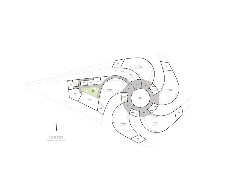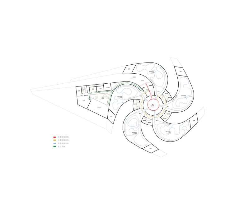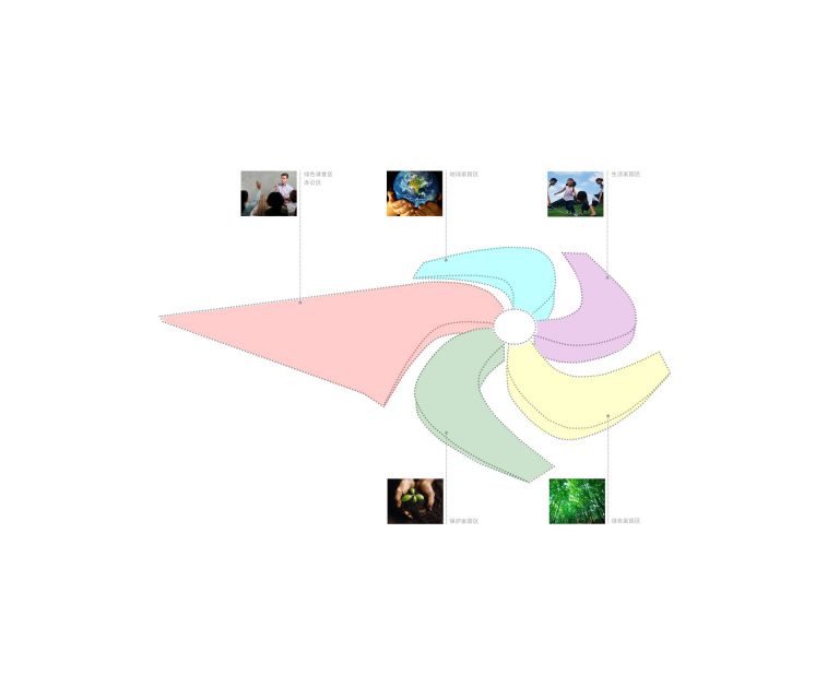 More than a simple metaphor of these two elements, every components of the building itself tries to take the best of them. For instance, the solar panels, located on the top of each petal of the Rose, have the same role of the Anthers of the Stamen for a flower. They are here to produce energy source for the Eco-Pavilion. Image, here, emphasized by the radial layout of the solar panels. The other move that plays part of the pinwheel figure is the three-dimensional twist that each petal or wing comes out of the ground… the Eco-Pavilion is neither a building to strict meaning of its term or a landscape but somewhere between the two, it blurs the edge of the so-called “landscaped architecture” or “ground architecture”.