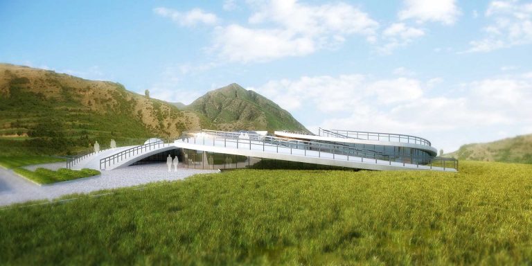 For a more concrete design description, the space of the Eco-Pavilion is composed of 5 branches. Each one dedicated to a major theme as said above, the exhibition space will then be arranged accordingly. A gentle slope and a stair will solve the height difference of 1.80m between the main lobby and each exhibition space. Allocated under a grass roof surface, the technical side for MEP and office spaces for the managing program.