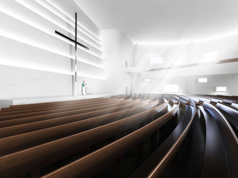 The main concept of the church is based on one of the most ecclesiastical symbols, the dove of peace. Early Christians portrayed baptism accompanied by a dove holding an olive branch in its peak and used the image as an allegory of peace.