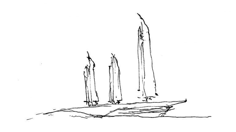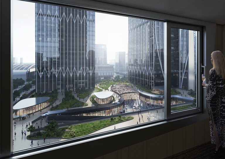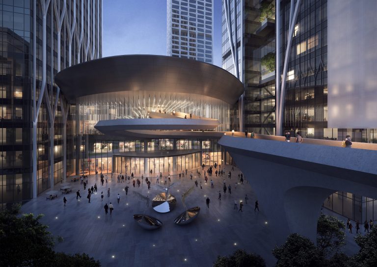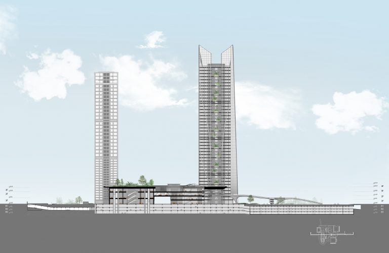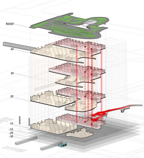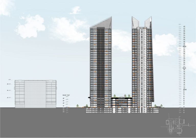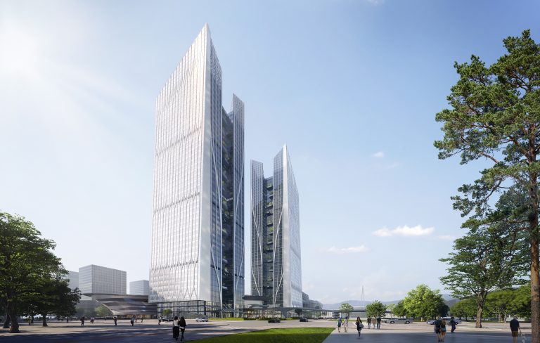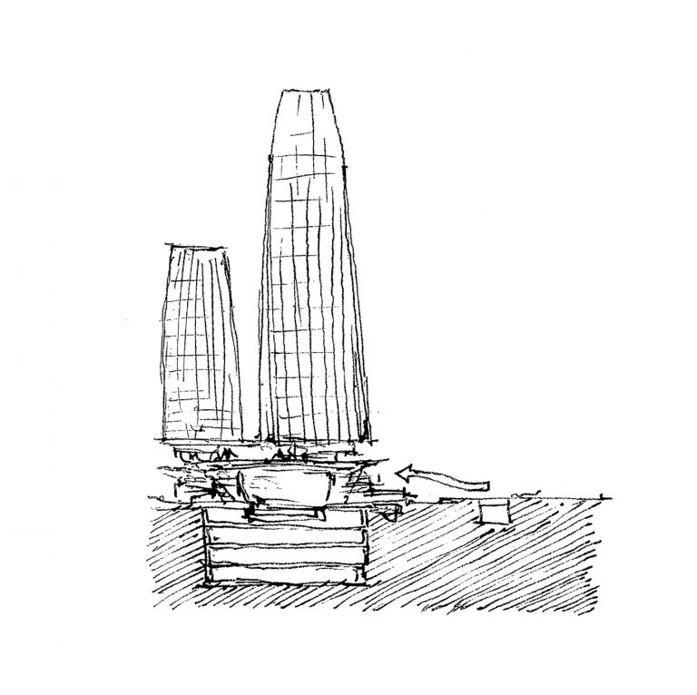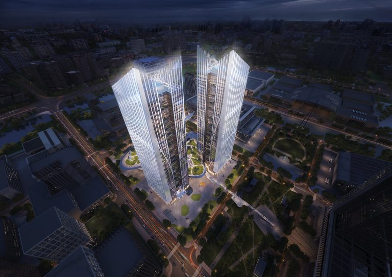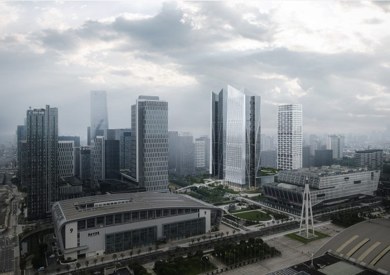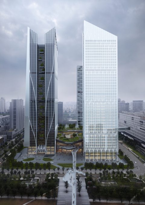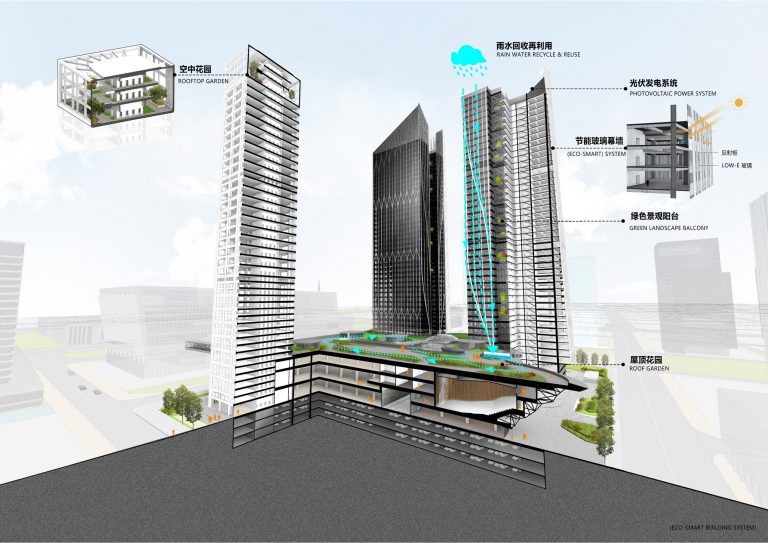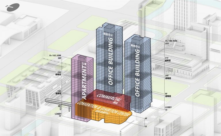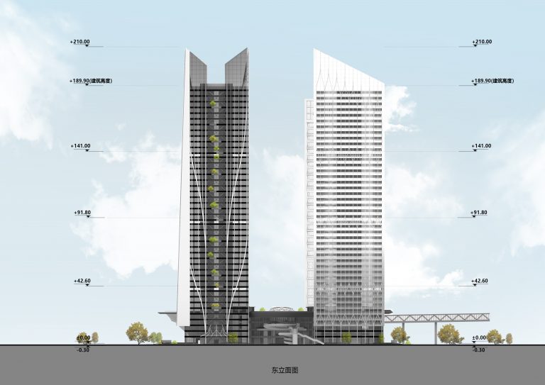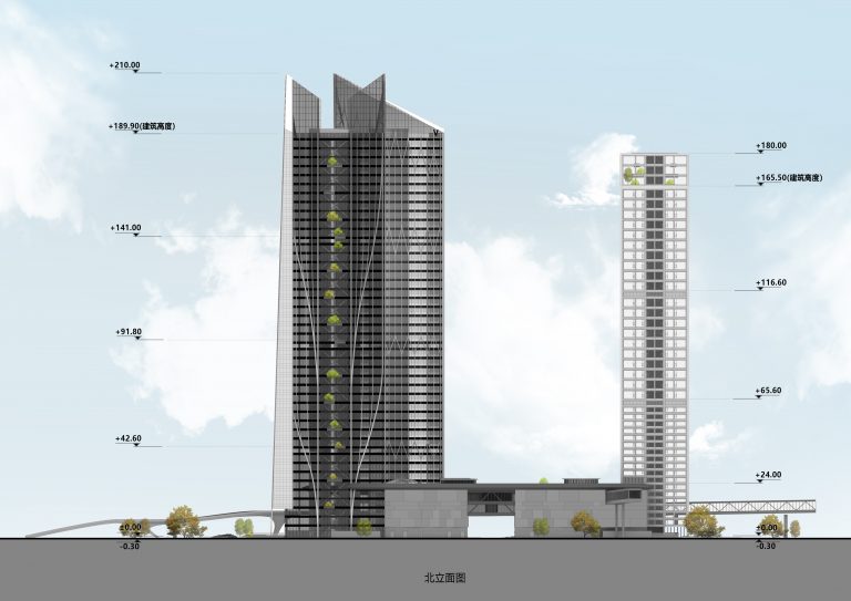 On the premise of meeting the requirements of functional area, the spatial layout of three towers seems to be the most appropriate choice. On the one hand, it can make the overall space feel more open and comfortable; on the other hand, the multi-stories conference center volume as a podium is highlighted.White sails shaped curtain wall of the main towers are tilted up in the air, their vertical fluid lines form the white sails of the mast and ropes, they are light and strong, giving the impression of holding up the sails, building a sense of the dynamic of vigorous growth. At night, the built-in LED lights of the white fluid lines change and vary colors over time, enlighten Ningbo night-time cityscape.