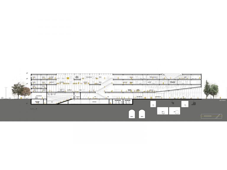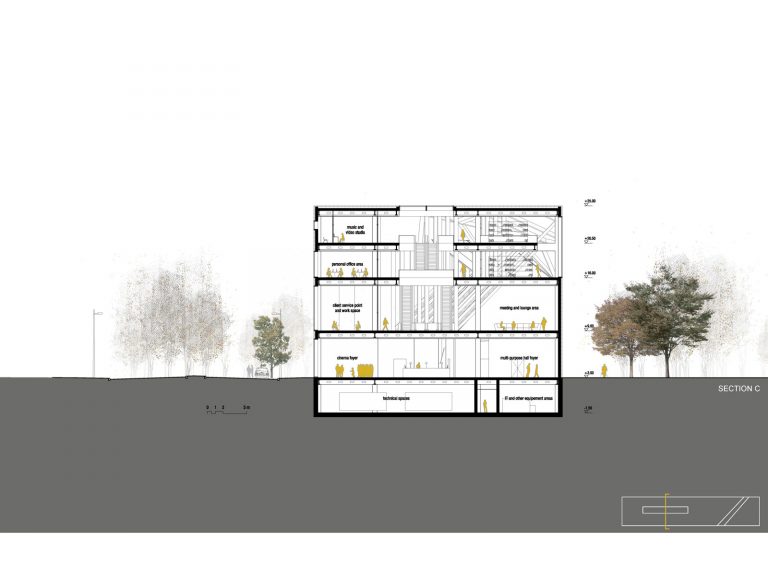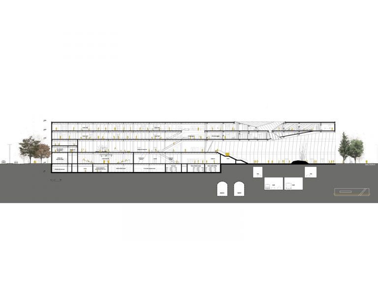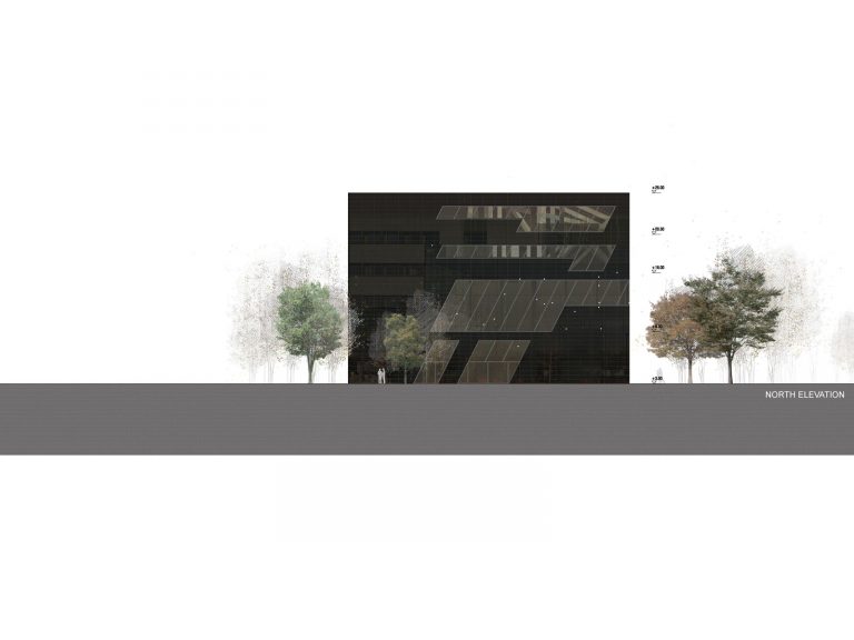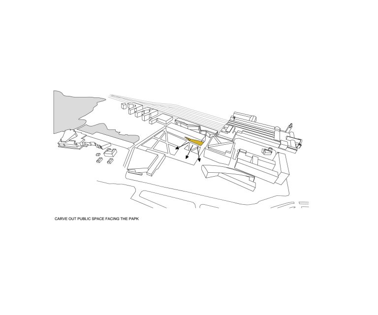 ONYX will be a black precious stone that has the properties to both absorb and reflect its surrounding. It is able to reflect the urban fabric on the east side and at the same time to absorb the flow of visitors coming from the park on the west side.