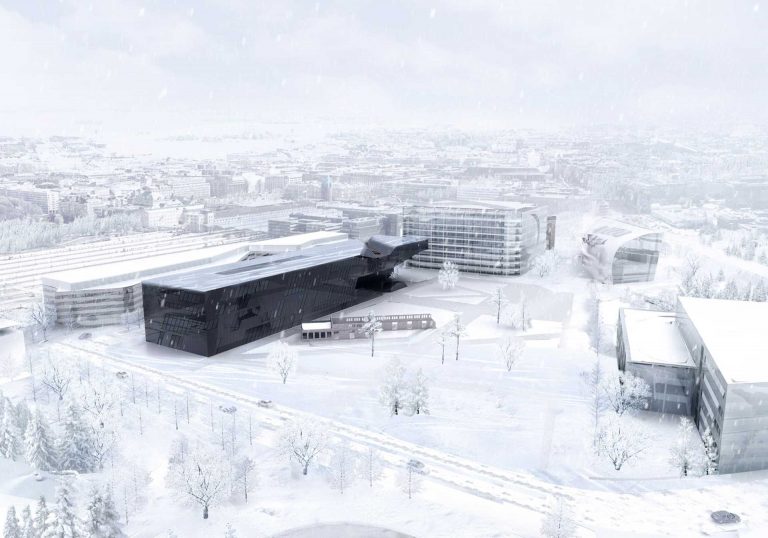 Located in the very centre of Helsinki, The ONYX – Helsinki Central Library forms seamlessly into the planned draft proposal of the Töölönlahti area, responding to the surrounding buildings, infrastructure and urban fabric.