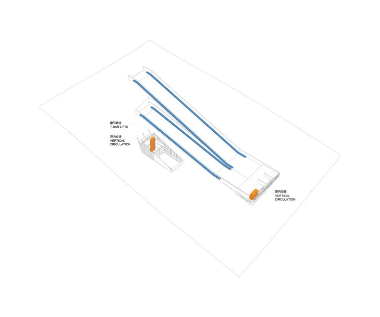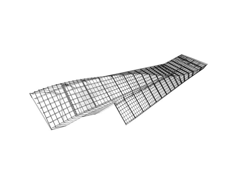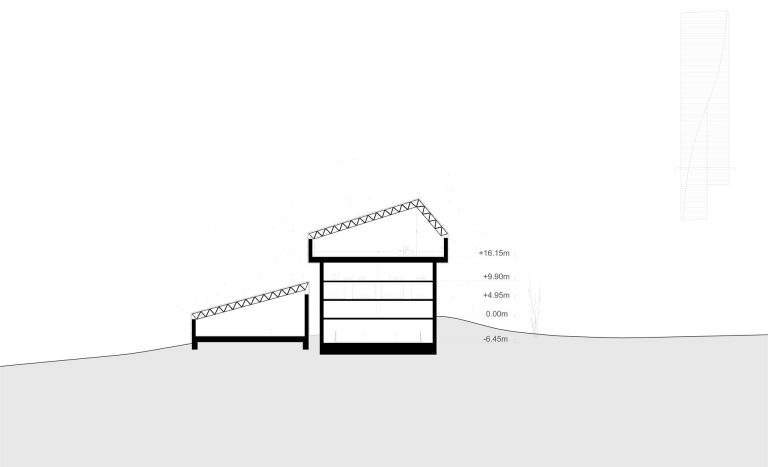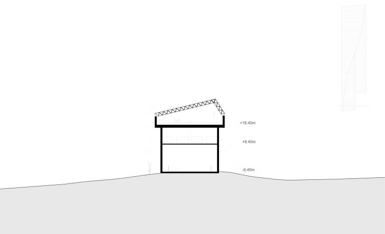 The concept of the dune gave us the idea of a volume produced only by applying a curve to a basic shape maintaining the low cost structural rhythm. Having this double curved roof also allows to recollect in an easily way the rain water in rainy seasons and it also favors the melting of the snow in the winter.