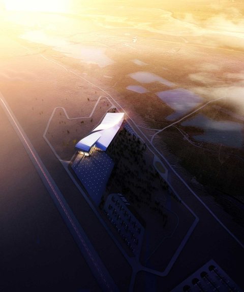 The project is based on the idea of exchange between oasis and desert. Creating an architectural volume like a dune provokes a gradual change in the concept, allowing the large volume to seat in a flat surface diminishing the effect of architectural pollution and applying the term of landscape architecture.