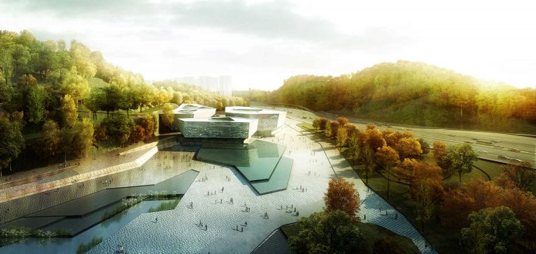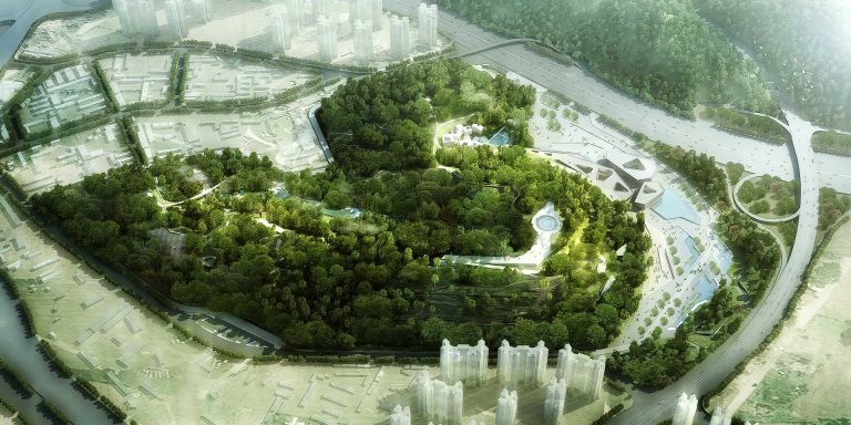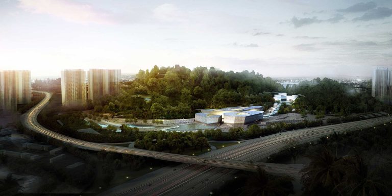 Shenzhen Antuo Hill exists as a quarry and the ecological environment has been severely damaged as a result. New environmental remedies plan to develop this area into a rich, modern center for culture and livelihood.