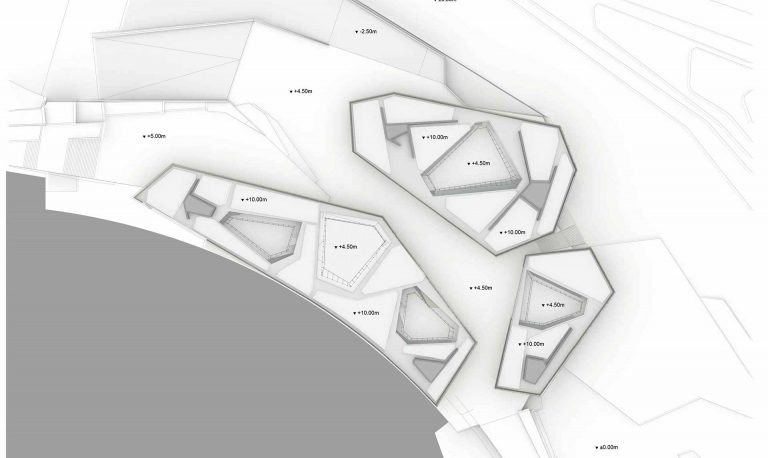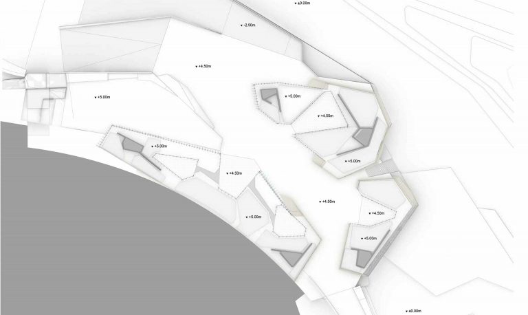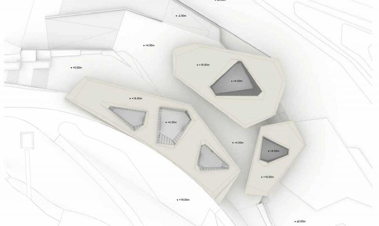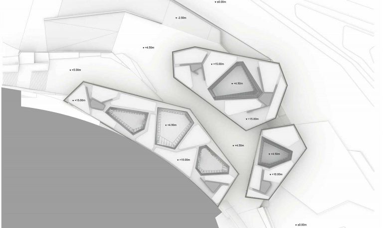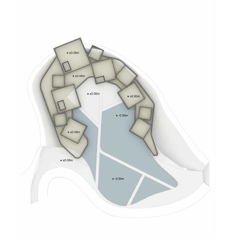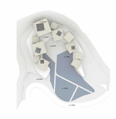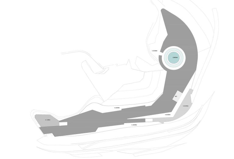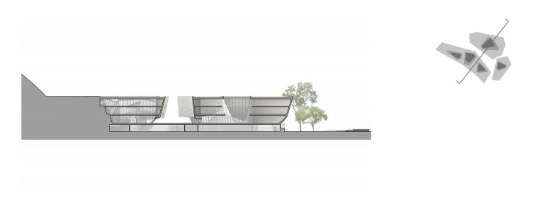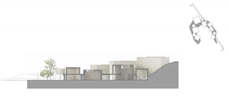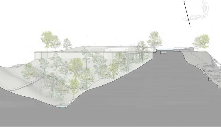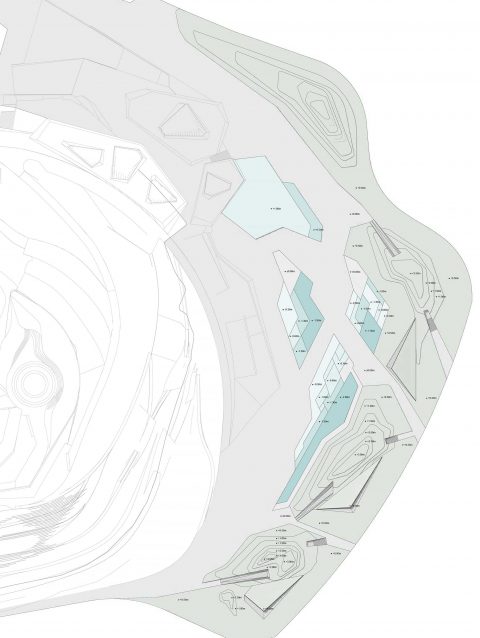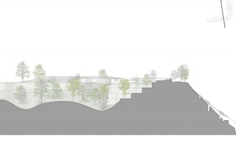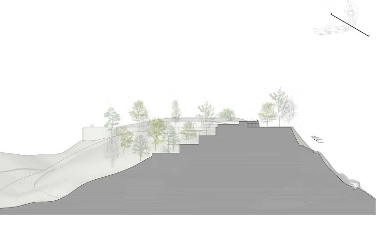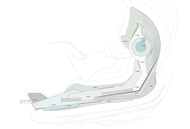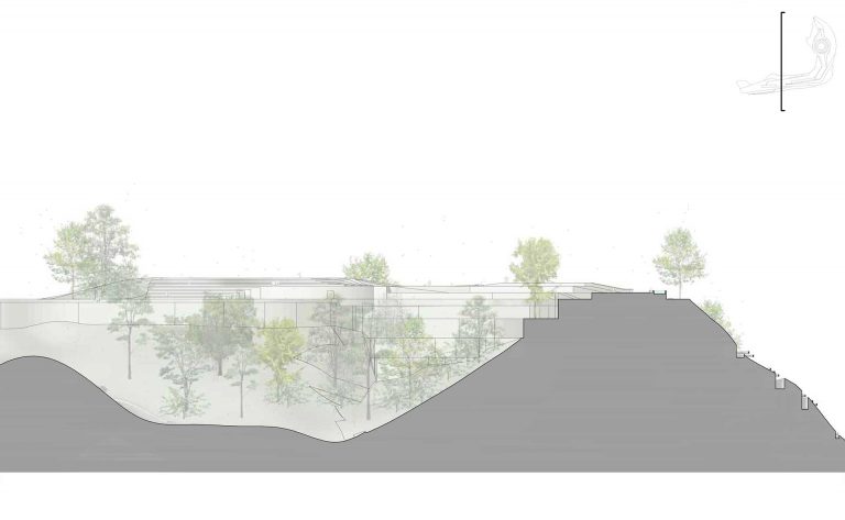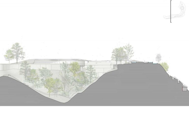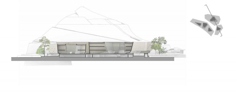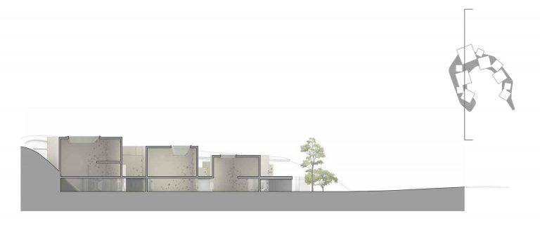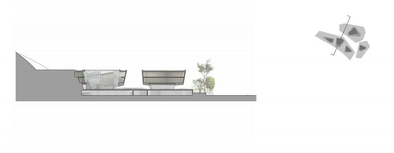 Based on detailed analysis of existing spatial and environmental conditions, different themes and forms of the museum buildings form along the mountain. The foot of the building has gritty, geometric rock texture in order to preserve and continue the historical memory of this region. The viewing platform is located in the top of the mountains, resembling the inhabitant daily activities–neat and round, embedded in the mountain, suggesting the ancient philosophy of “the Unity of Heaven and man” is the unity of man and nature.