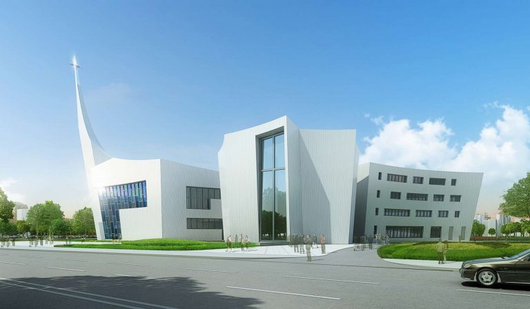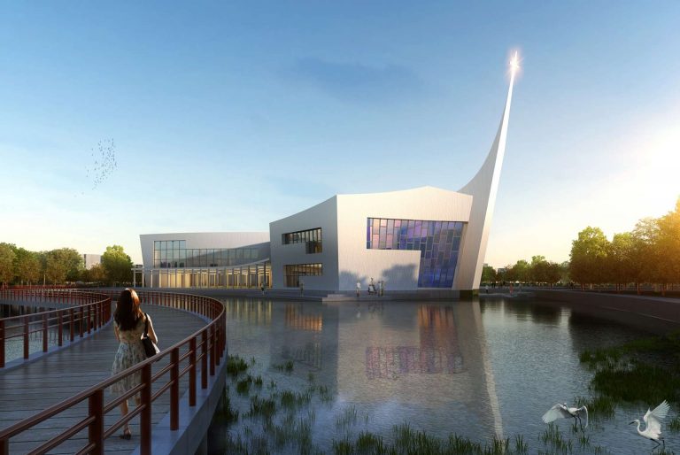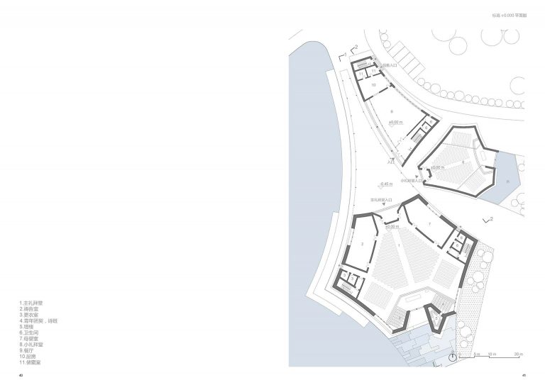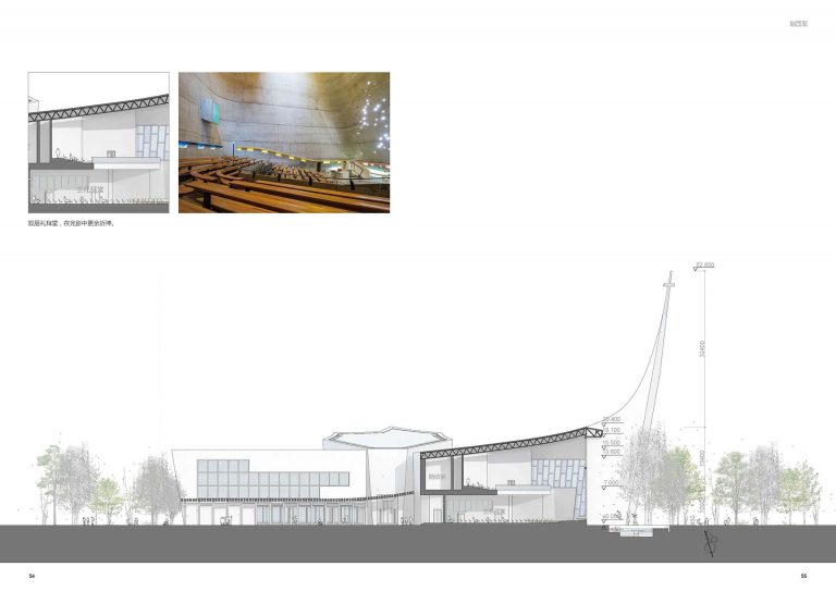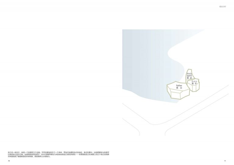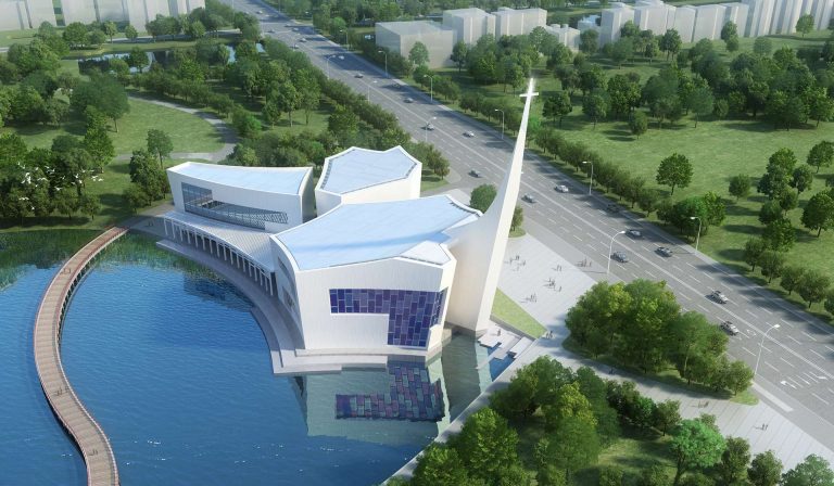 Neo-Gothic architecture can get on your nerves after two millennia. We gave the church needed revisit. Designed on a waterfront, the Zhangjiagang church just epitomizes “pristine”. The holy trinity is reinforced by the three structures/buildings within the church grounds. The program is divided in these three volumes, having the church in the biggest one, then a small chapel in the middle and finally the seminary. The three buildings are joined on the outside by a pergola, having a space of reunion in between them.